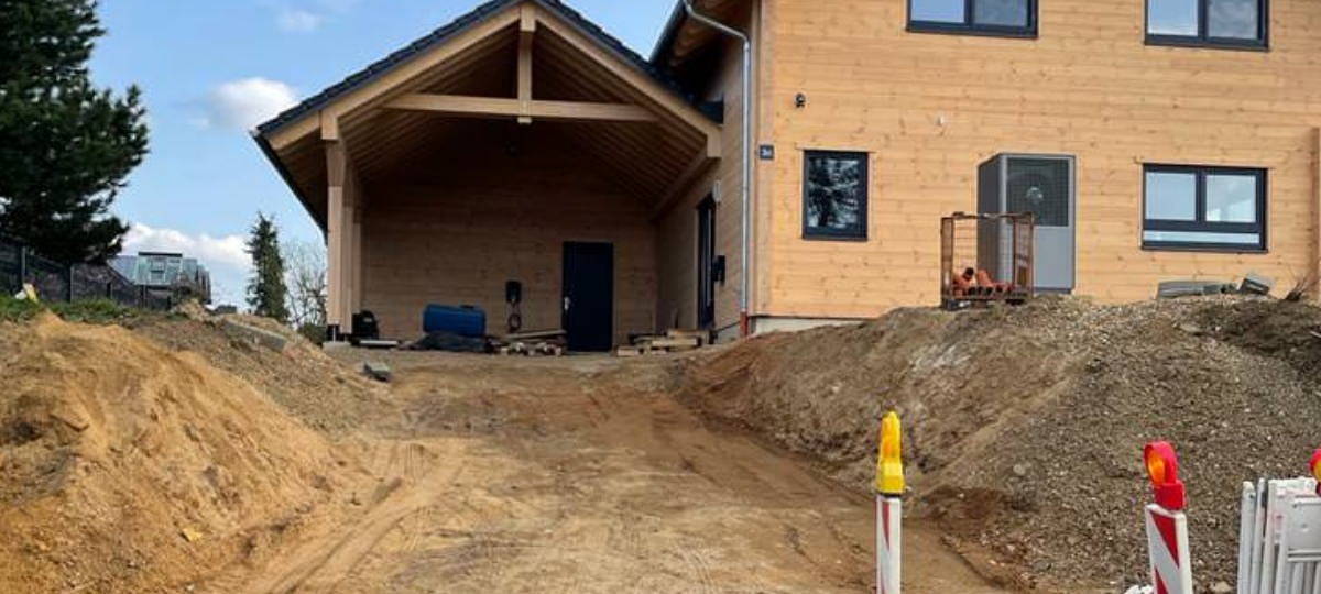 Herstellung einer Auffahrt mit Setzung einer Natursteinmauer