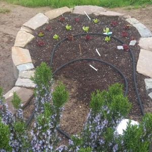 Die Idee hinter der Form des Hochbeetes begründet sich durch die Zugänglichkeit an die Pflanzen von jeder Seite, ohne das Beet selbst begehen zu müssen.