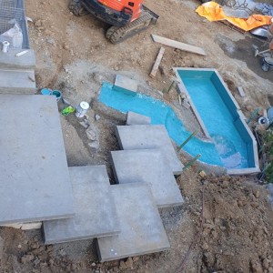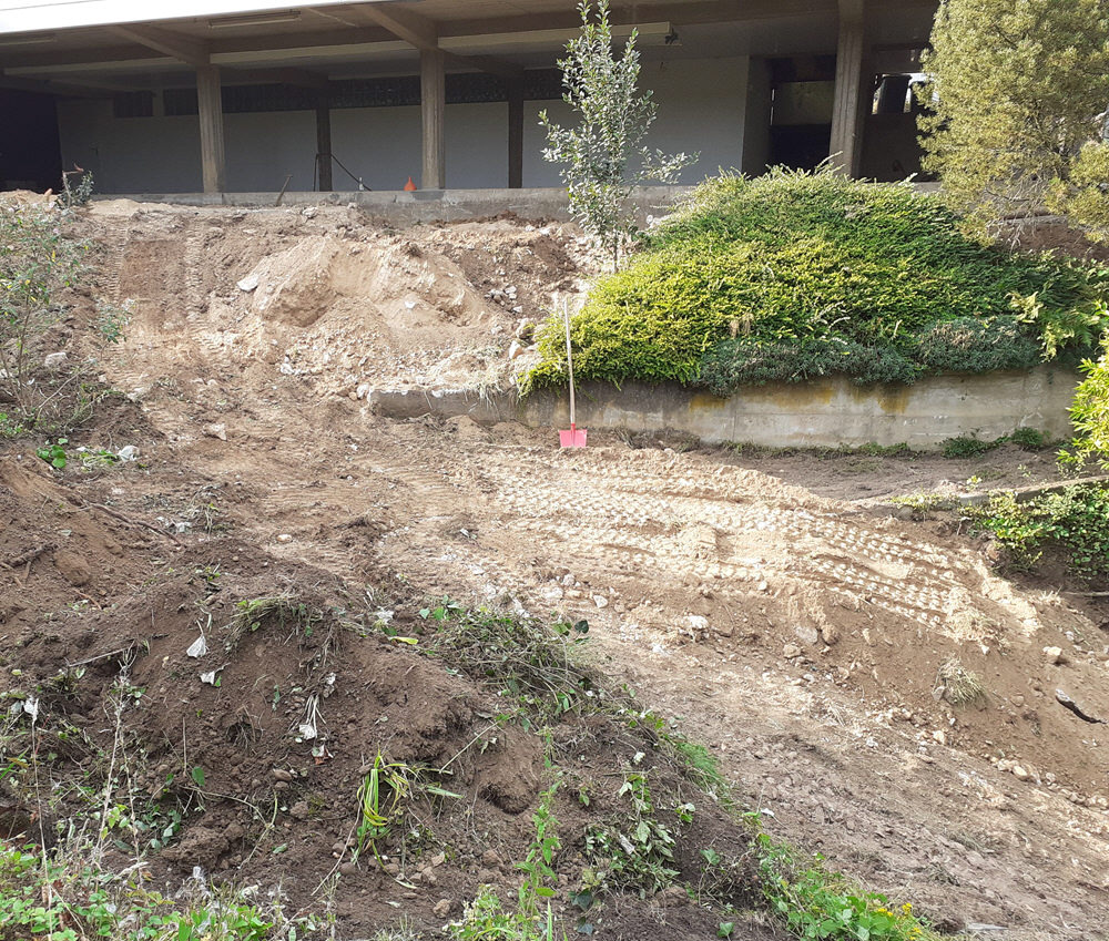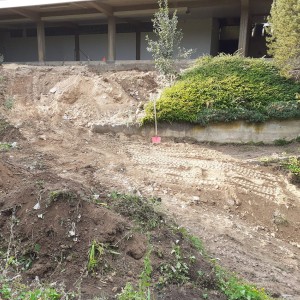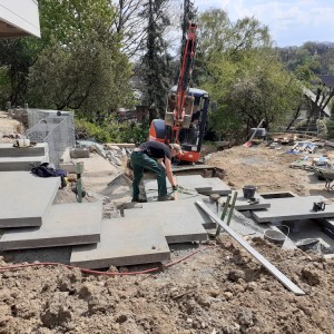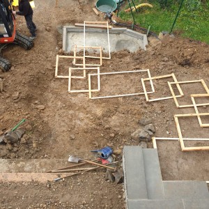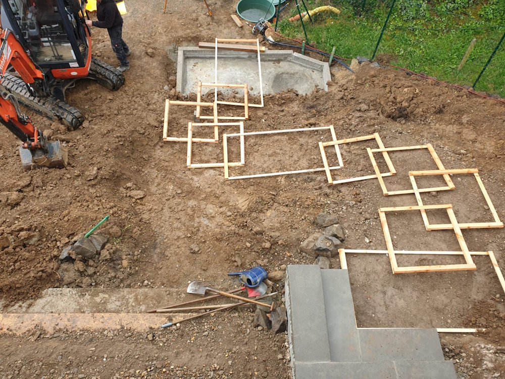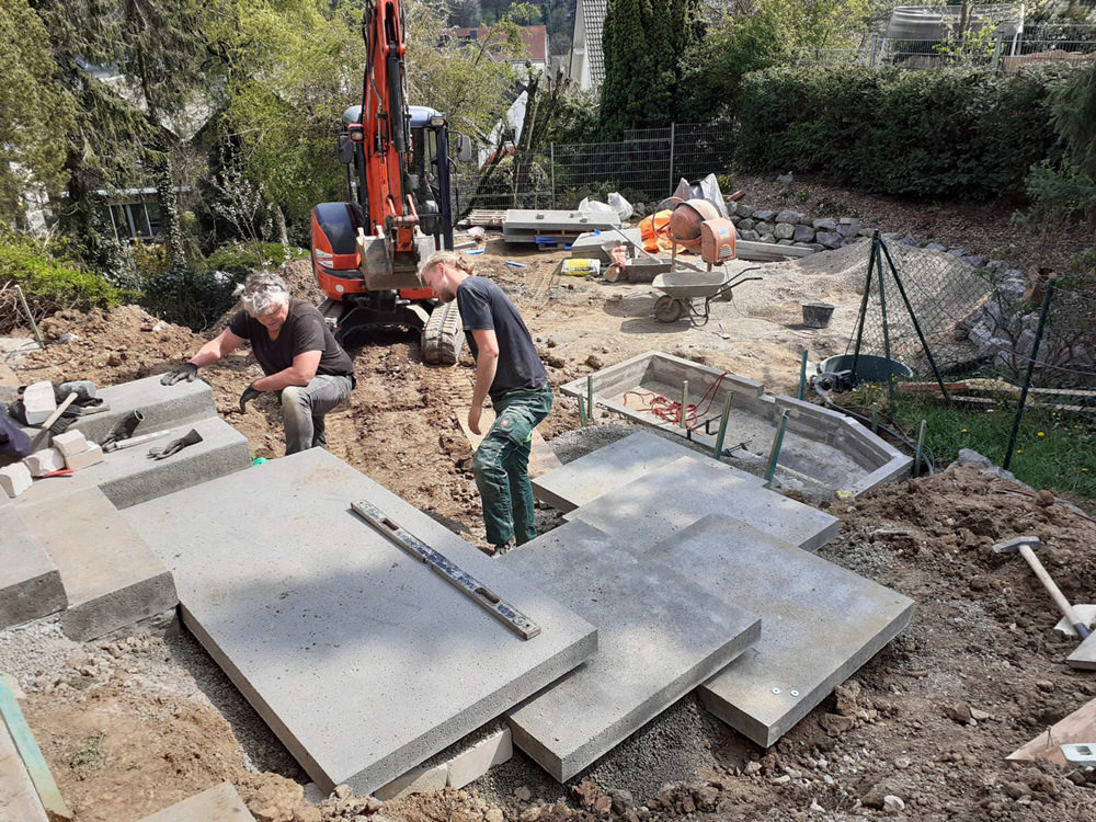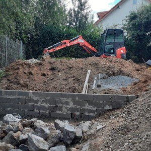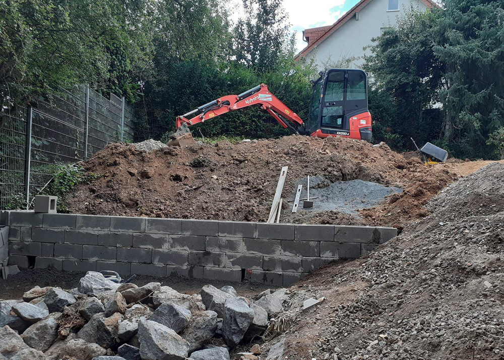 Die Terrassierung für Beete wurde mit Basalt Wasserbausteinen gelöst.