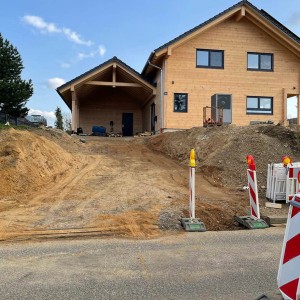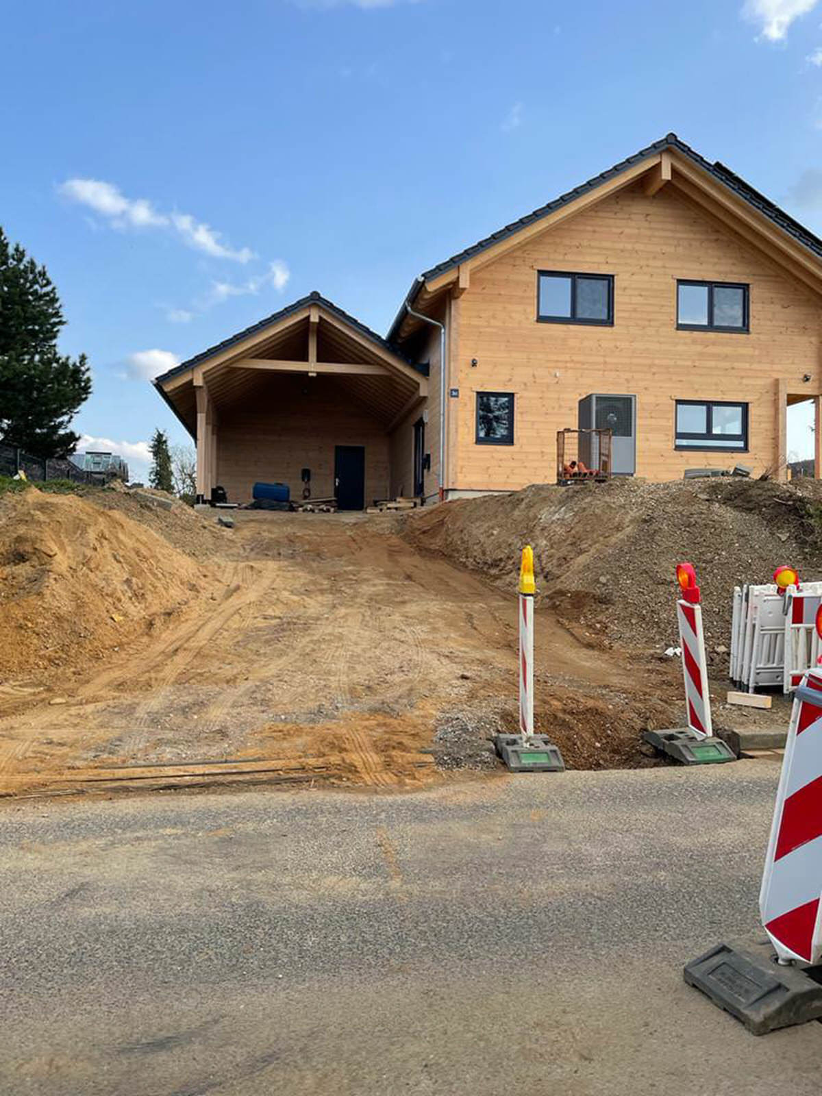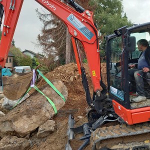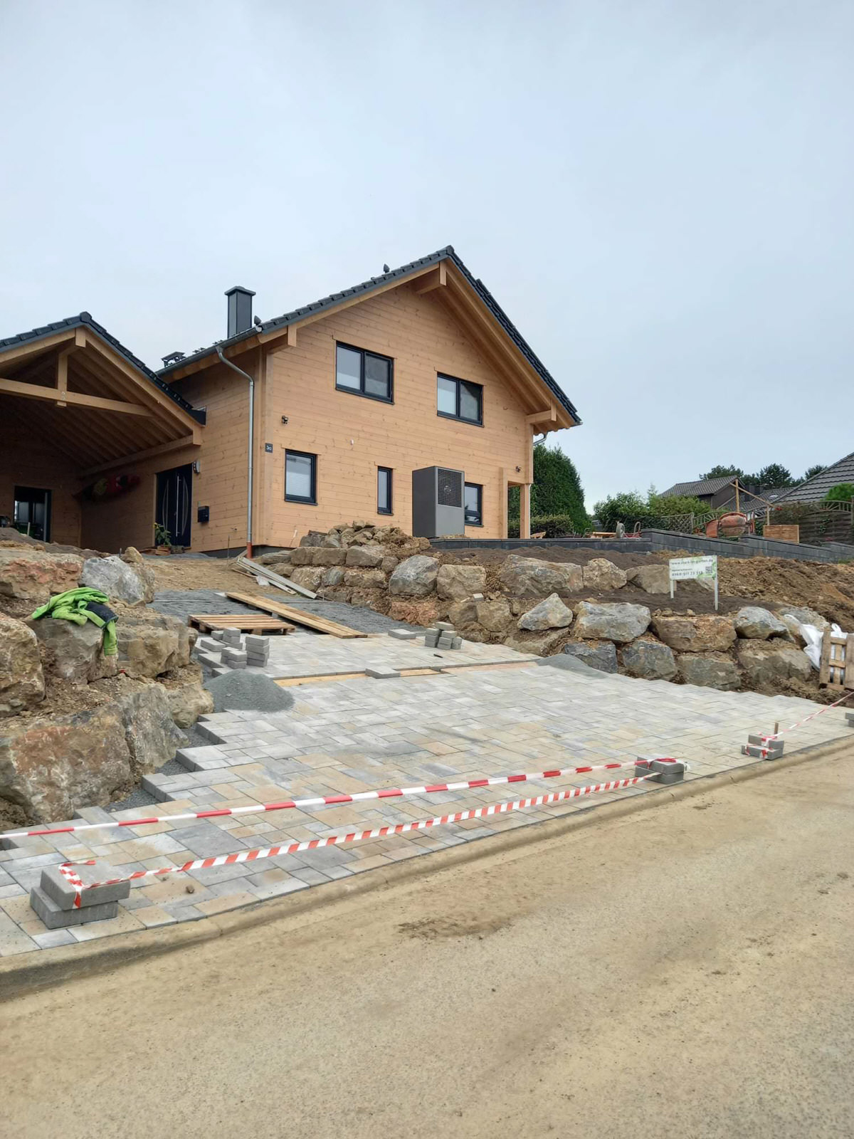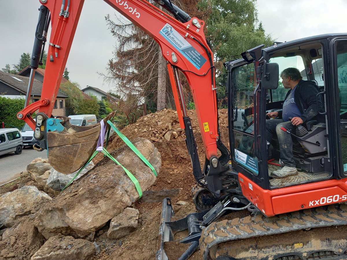 Herstellung einer Auffahrt mit Setzung einer Natursteinmauer